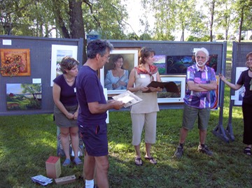 La remise du prix du public dans la catégorie « Originalité » des mains de M. Olivier Toupin président d’honneur du happening de St-Jean-Port-Joli